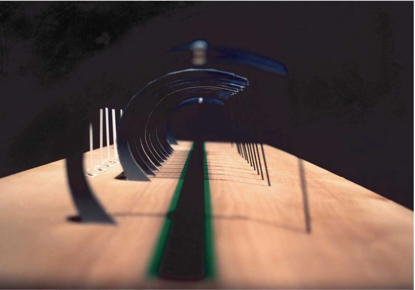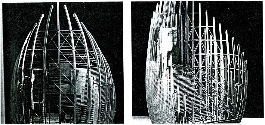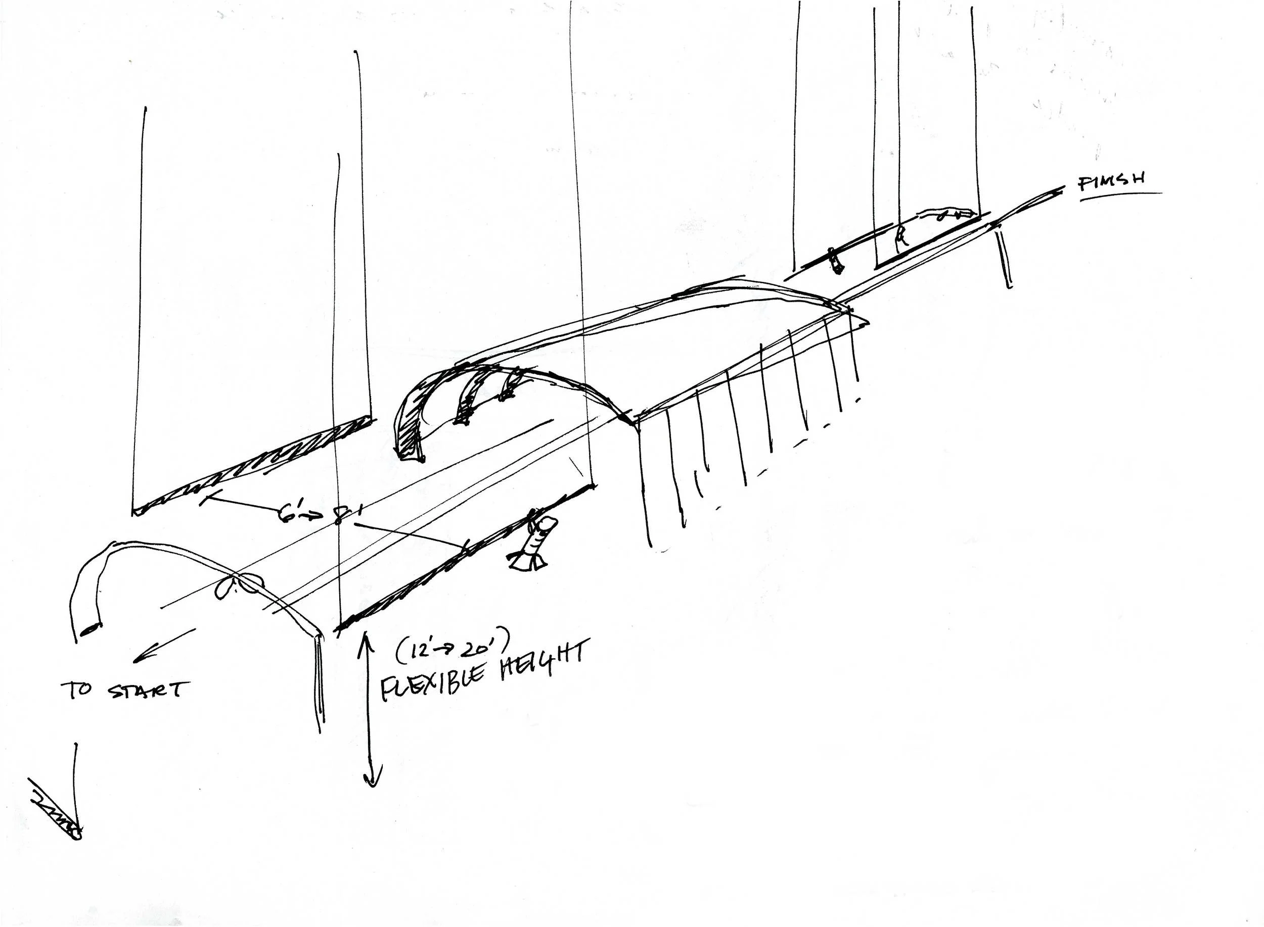 center in New Caledonia, designed by Renzo Piano. The structures are of all natural materials, and formed to mimic the organic forms of many artifacts and foods of the region. I was particularly attracted to the enveloping nature of the forms, how they seemed to hold the participant, which led me to the idea of capturing the scientific subject (Donovan Bailey) in a tunnel.