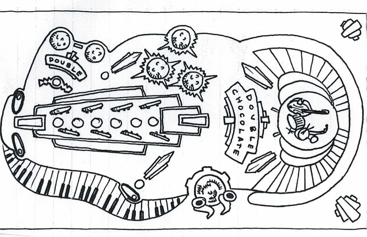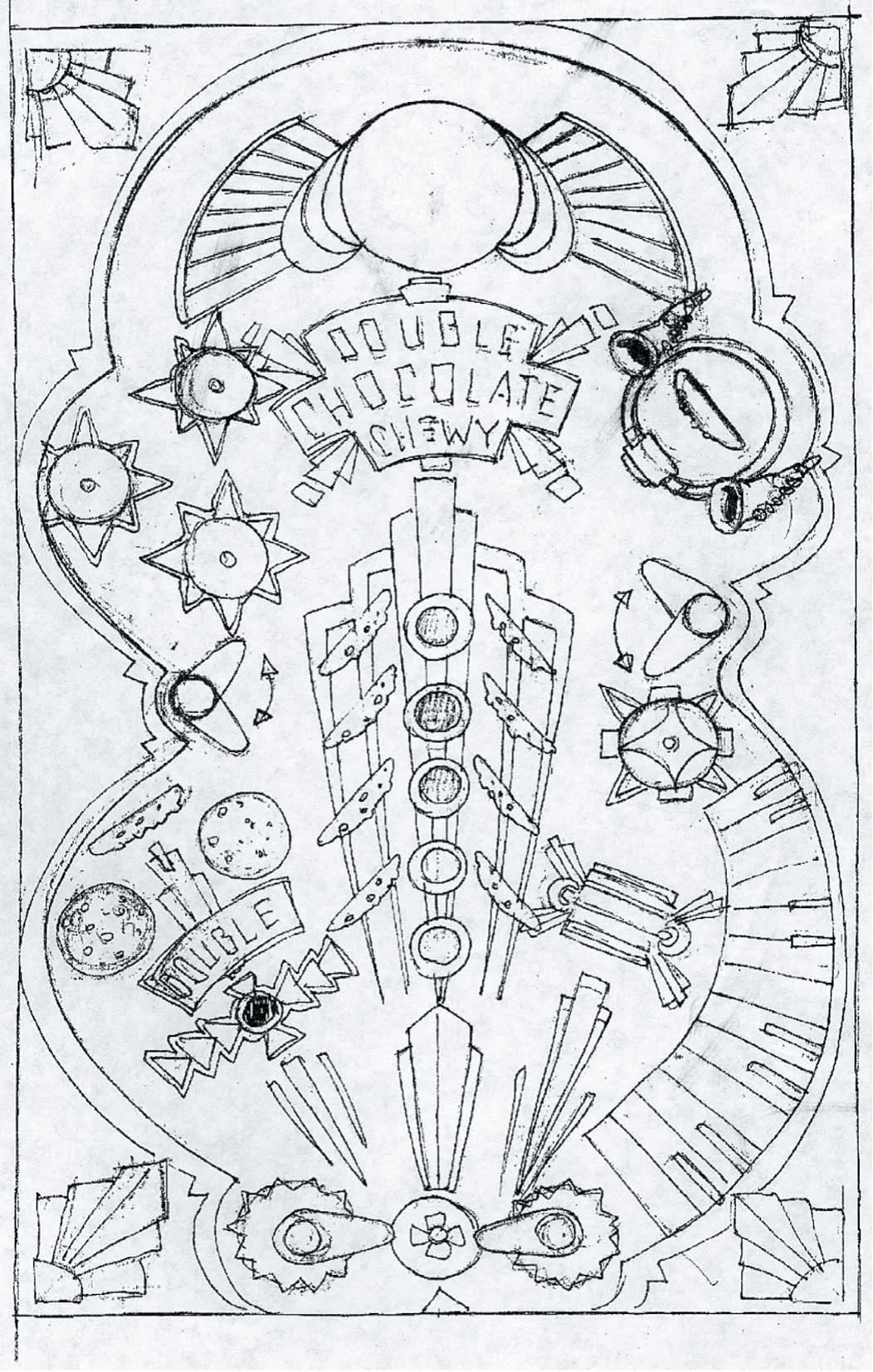 (6) One of the final conceptual sketches showing Interactive/MoCo elements, and graphic layout of the Machine deck.