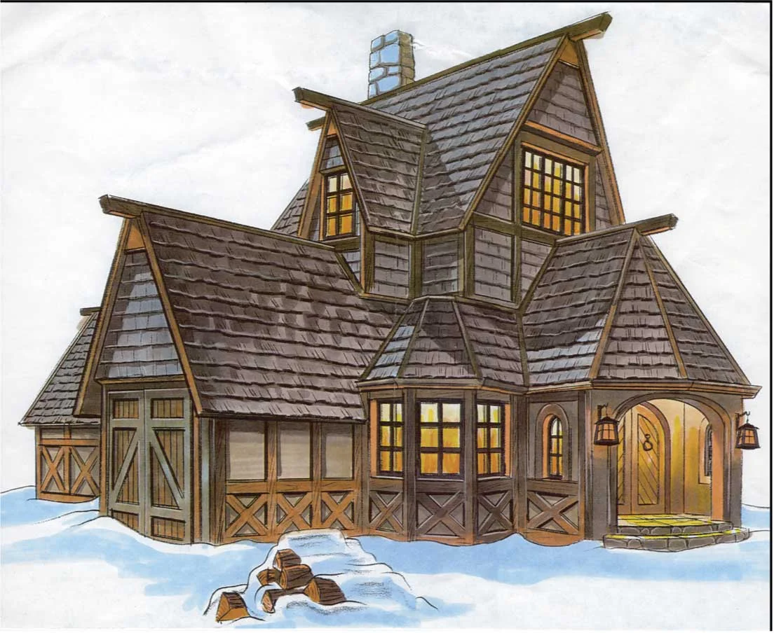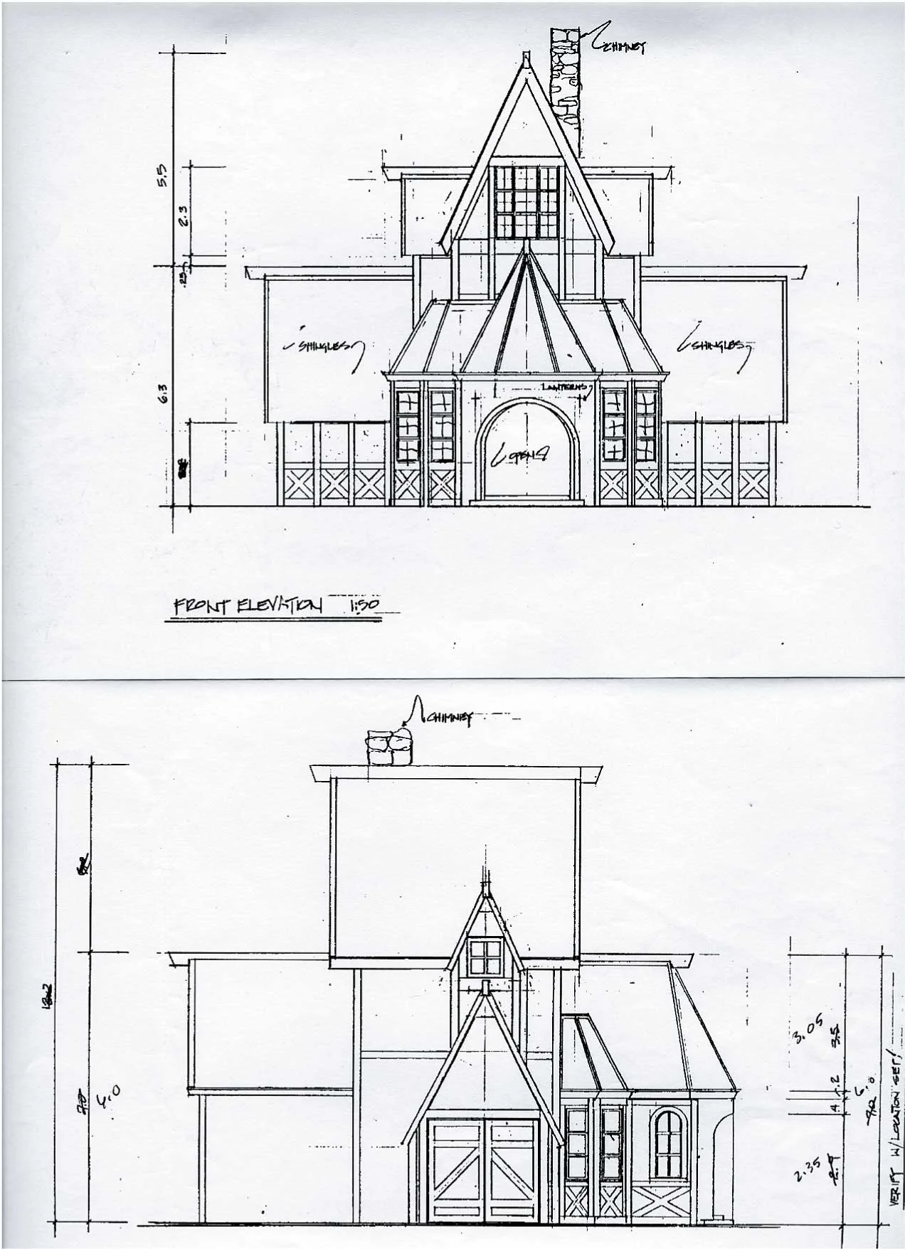 (3,4) The final concept illustration and the original scrap of research I found inspiring from Norse architecture. The agency suggested a more “suburban” vibe, so I ended up with the more accessible final design.