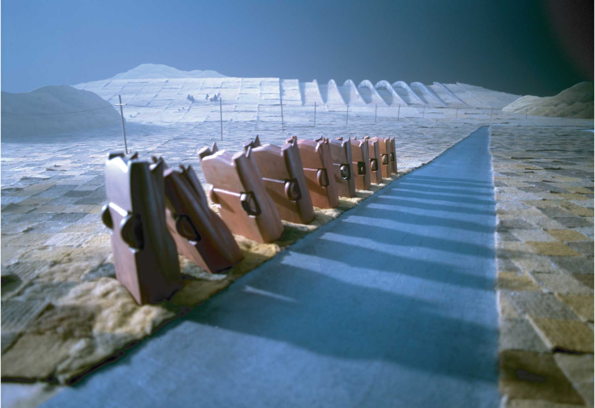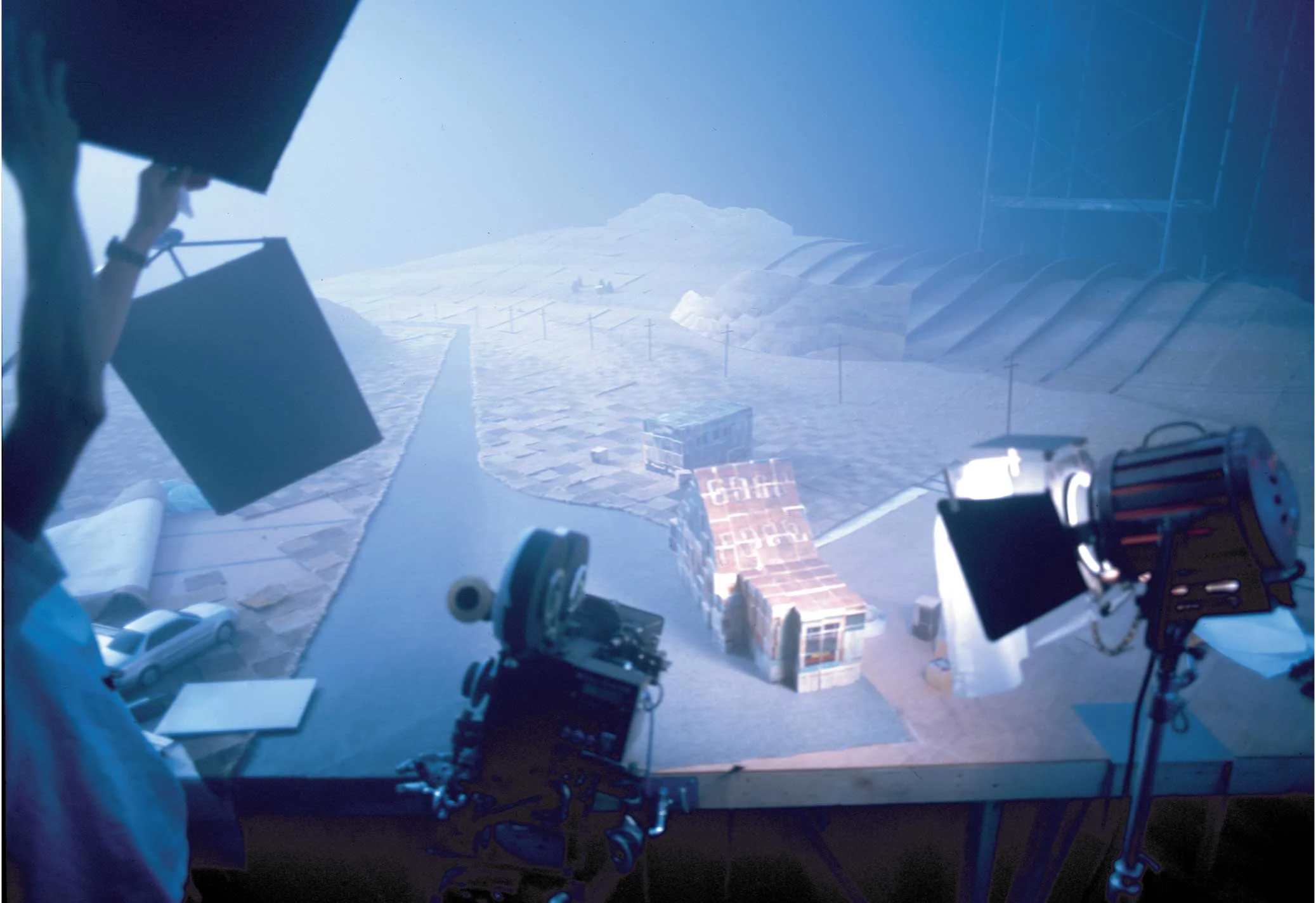 (3,4) The miniature set along with the insert live action set built on location. Shot with the car and the actors, it was easier to integrate the two pieces.