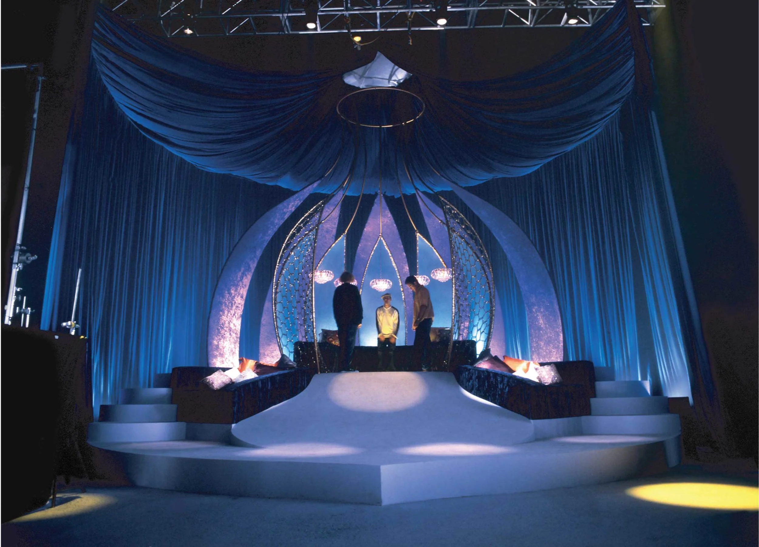 Brief: “I Dream Of Jeans”. A take off on “I Dream Of Jeanie”, where our heros and heroines are doing thier bit in a “Jeanie’s Bottle” environment. The jean clad youth were to dance all upon and around the set, hence the (once again) Busby Berkeley type of staging.