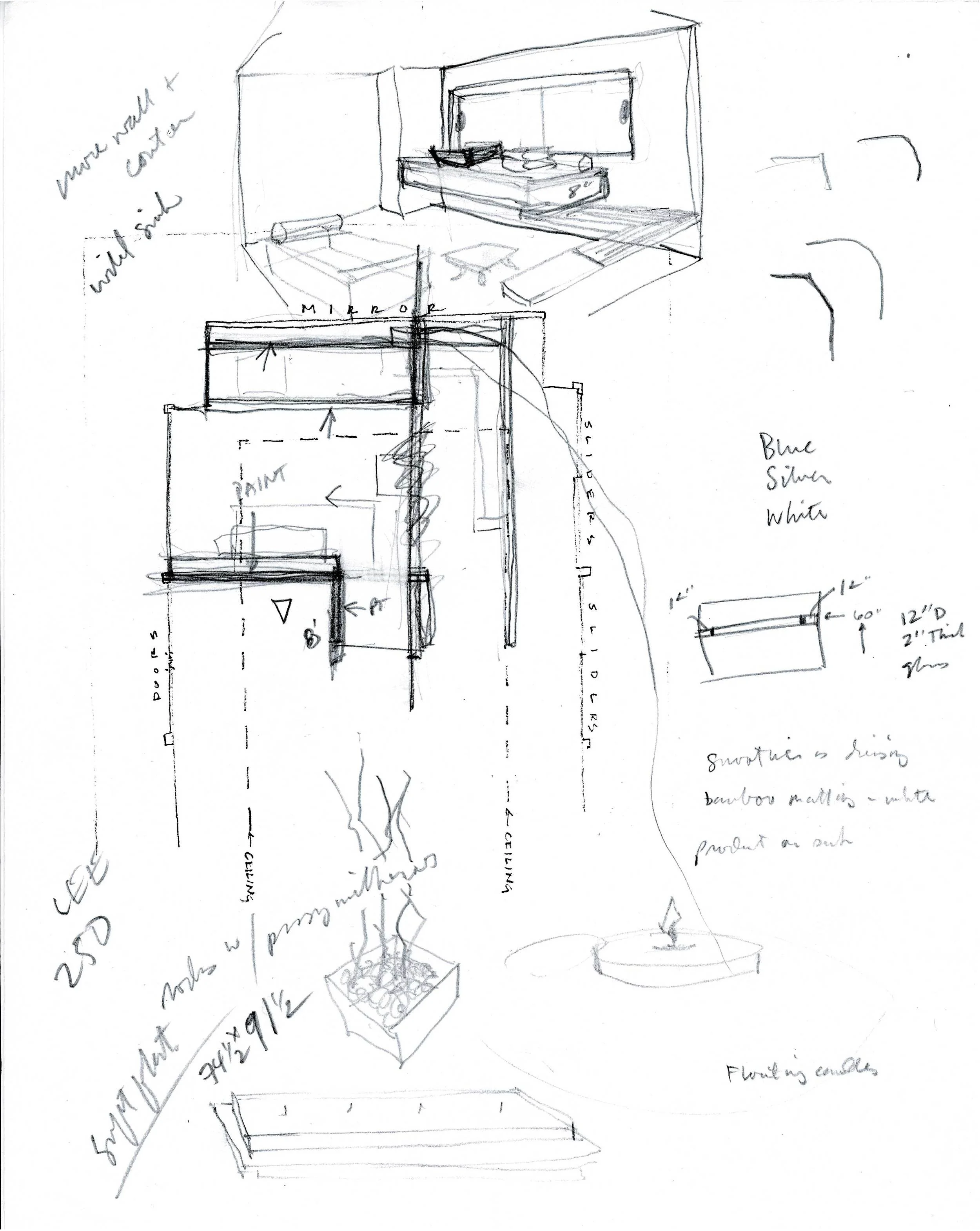Also, both the bookcase and the painting obstruct doorways - this is shot in the foyer of a modernist home - creating a more seamless background. We had difficulty finding the “just right” location to satisfy our minimalist desires, so with this suggestion, I was able to help make this location work.