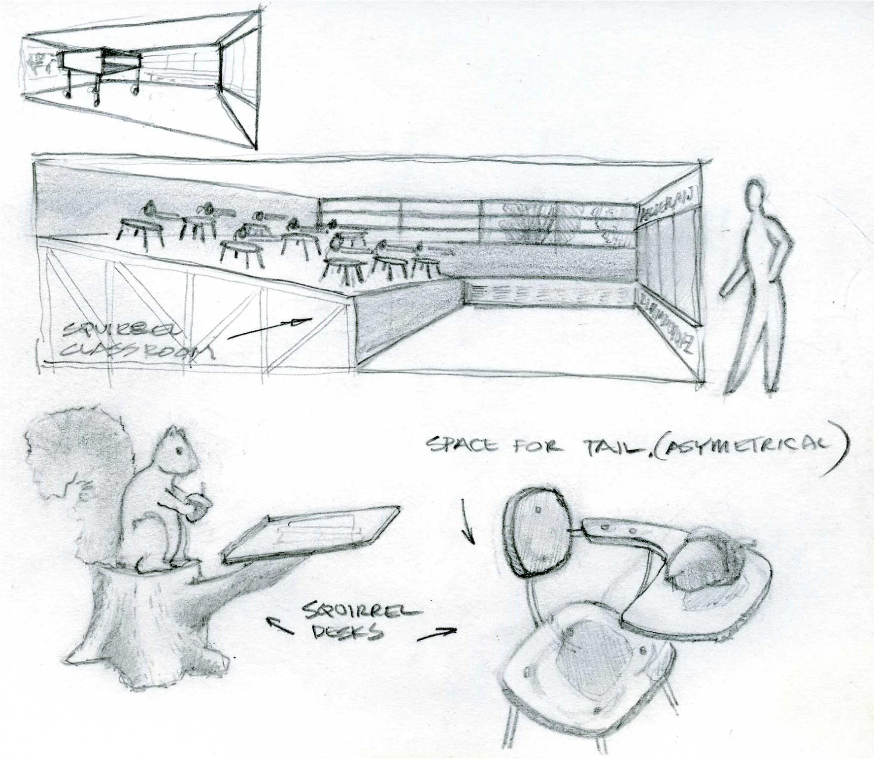 (5) Conceptual sketch of what a squirrel’s classroom chair might look like. Of course, the