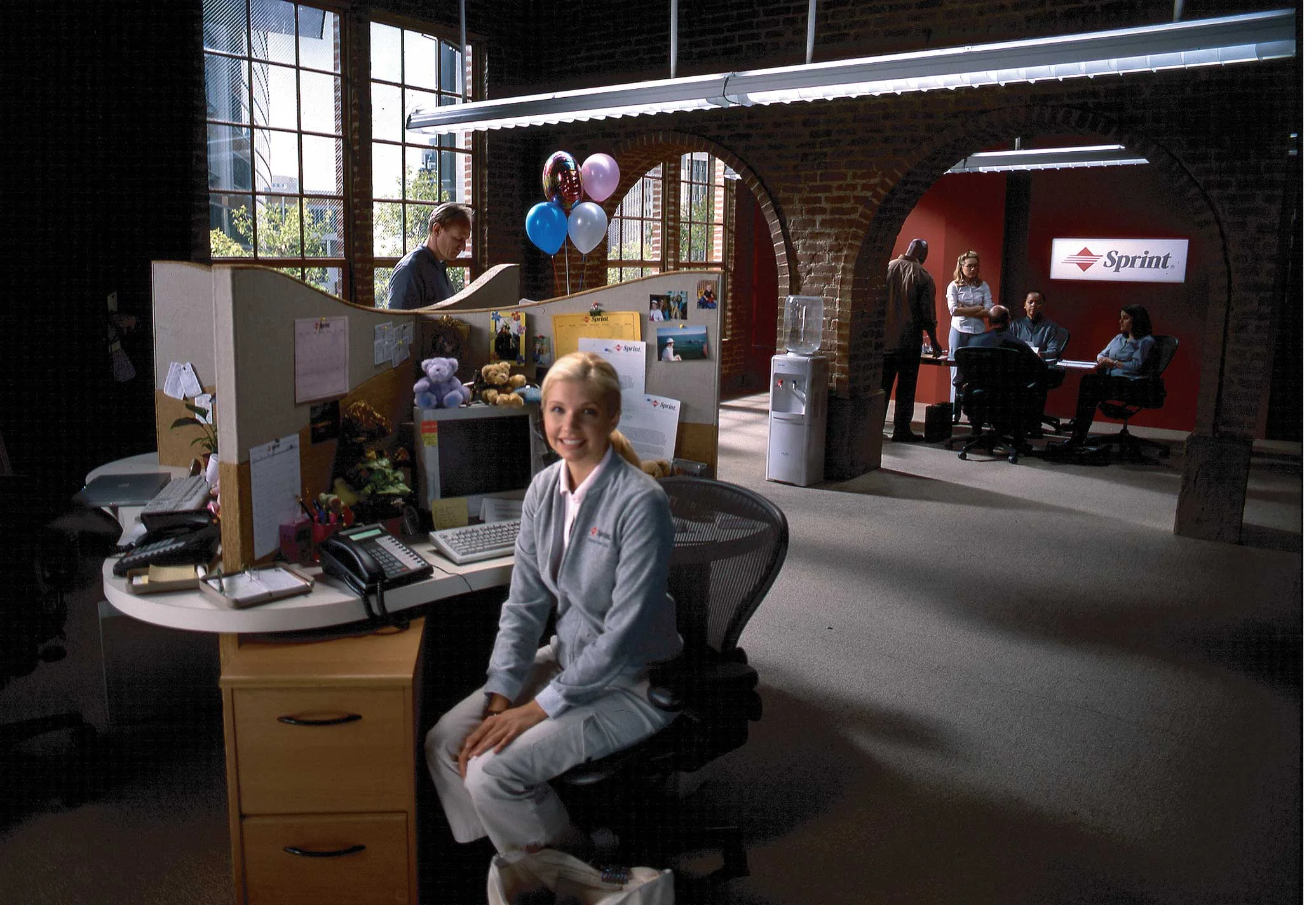 (2) Interior of Sprint office built on stage.