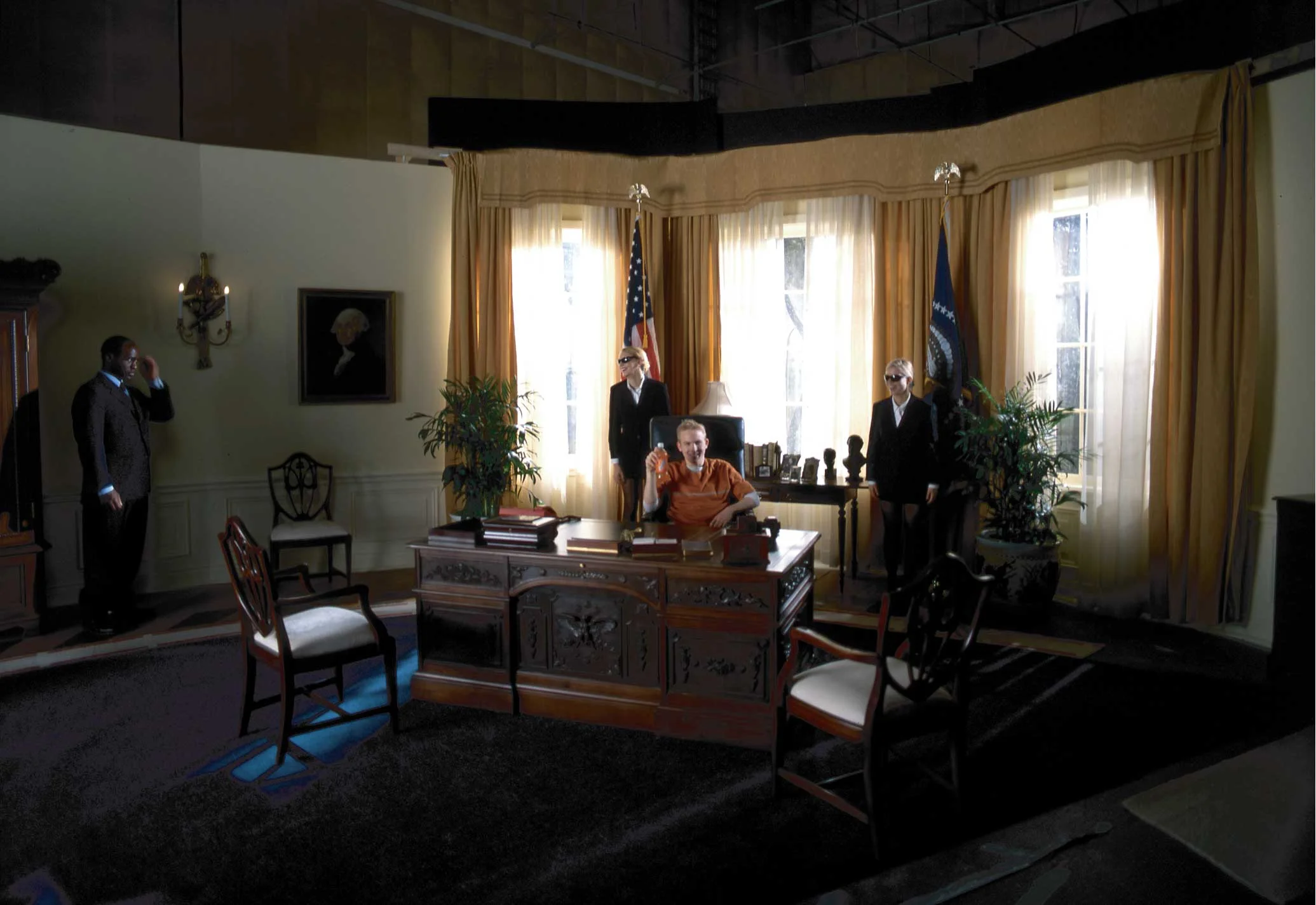 (11,12) The oval office set, where our hapless hero ends up, and the reference for the ACTUAL Oval Office.